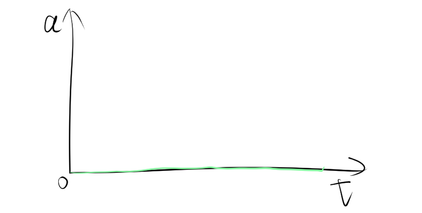 加速度がゼロのとき、a-tグラフは横軸(加速度が 0 の線)上に沿った水平線となります。これは、物体が等速運動をしているか、静止していることを示します。
