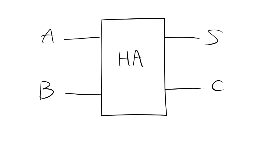 半加算器は基本中の基本。二つの入力を足すだけ。