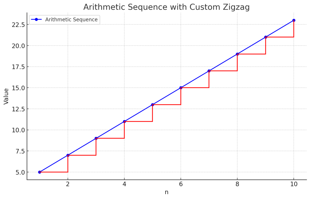 例えば、初項が \( a_1 = 3 \) で、公差が \( d = 2 \) の場合、漸化式は次のようになります。
