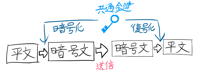 そうそう!送る側と受け取る側が“同じ鍵”を使って情報をやり取りするのよ!