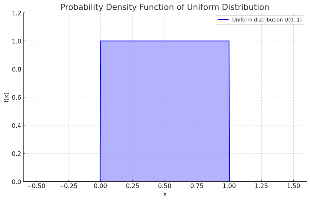 連続一様分布は、ある特定の範囲 \([a, b]\) の中で、任意の値 \(x\) が発生する確率が均等であることを特徴とします。すなわち、区間内のどの部分でも発生する確率密度が等しいです。