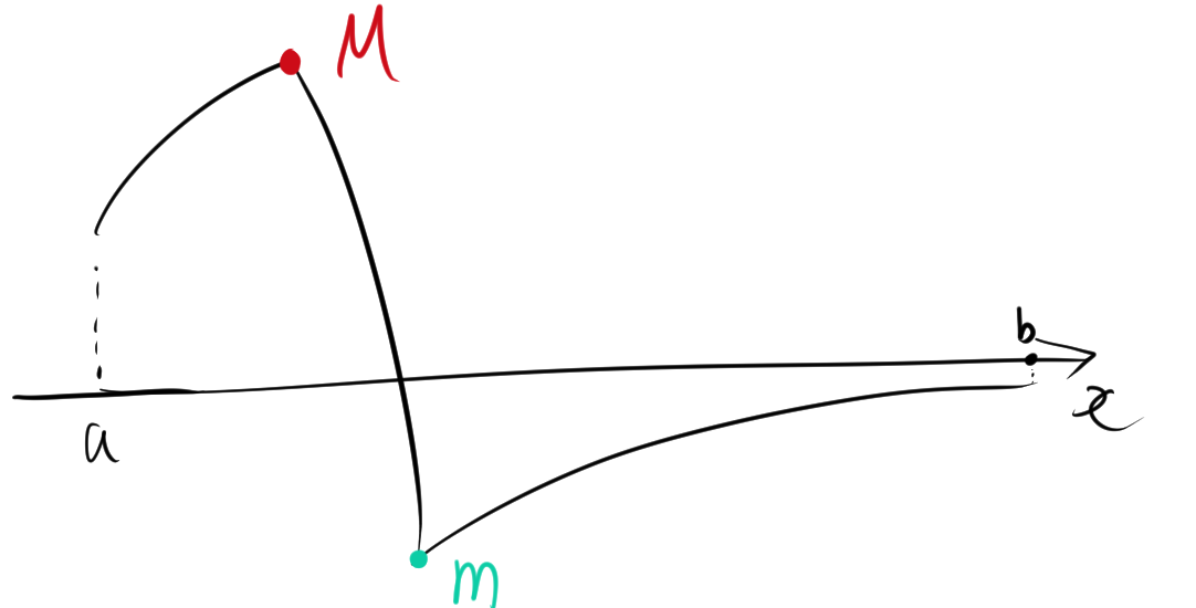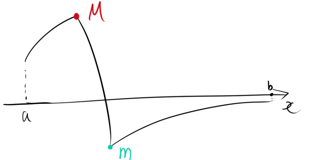 最小値 \( m \) は \[ m = \min_{x \in [a, b]} f(x) \]
