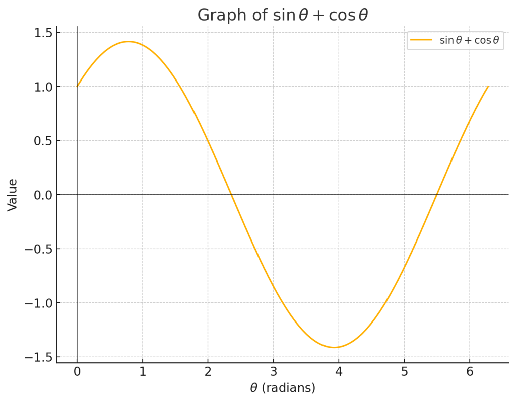 $=\sqrt{2}\sin\left(\theta+\displaystyle\frac{\pi}{4}\right)$