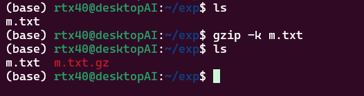 このコマンドにより、file.txtはそのまま残り、新たにfile.txt.gzが作成されます。
