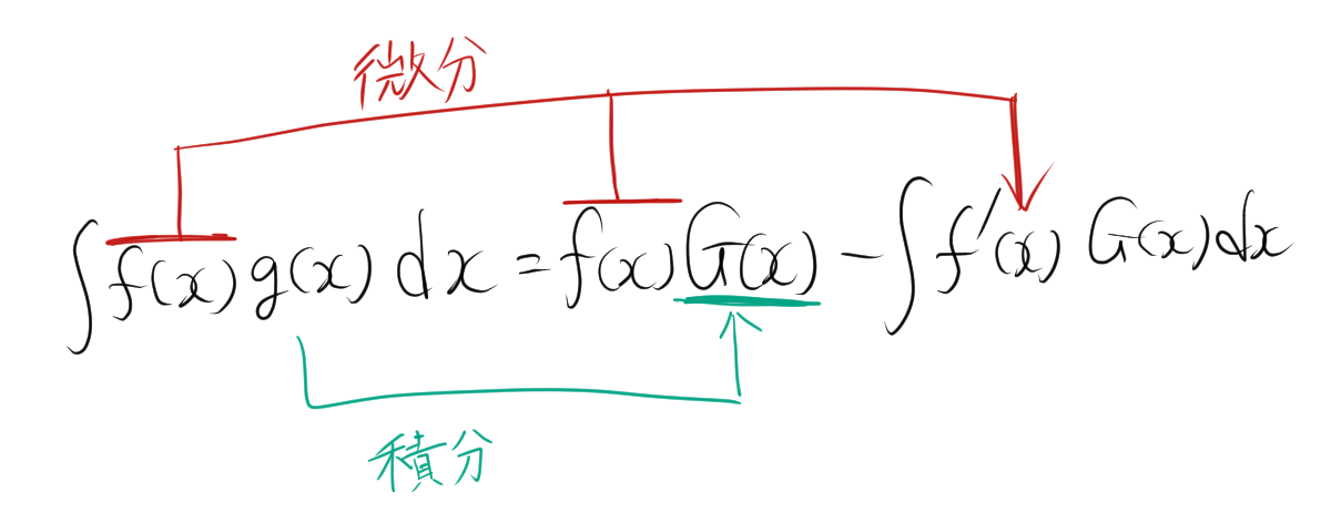 \[ \int f(x) g'(x) \, dx = f(x) g(x) - \int f'(x) g(x) \, dx \]