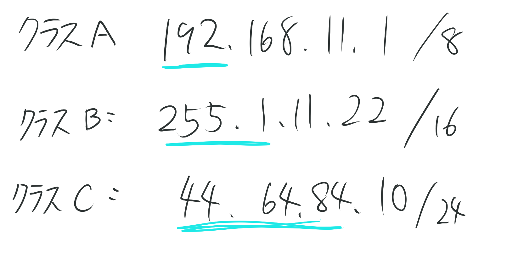家庭用のネットワークや小さなオフィスなら、クラスCで十分ってことか~!