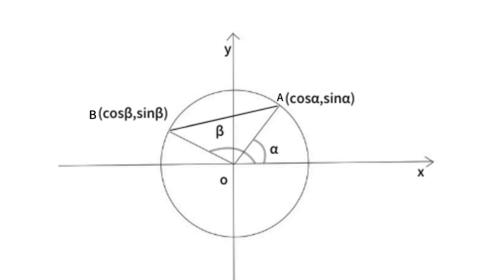 $\cos \left( \alpha -\beta \right)$の証明1:単位円と余弦定理
