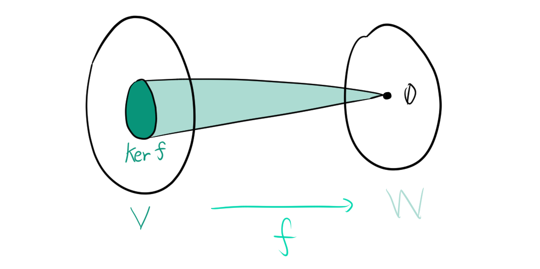 \[ \text{ker}(f) = \{ v \in V \mid f(v) = 0 \} \]