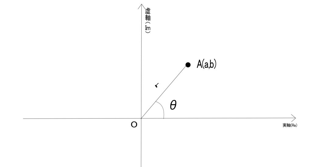 複素数 $z = a + bi$ を考えます。このとき、$r$ は原点から点 $(a, b)$ までの距離に相当します。すなわち、次のように定義されます。