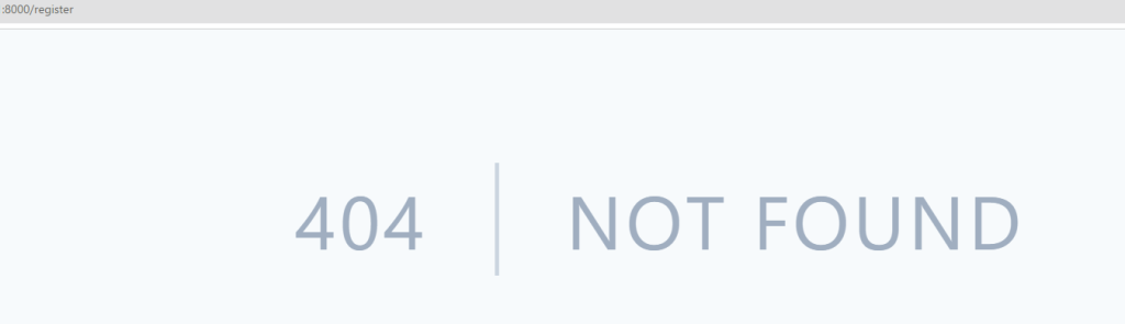 http://127.0.0.1:8000/registerに移動すると、404 NOT FOUNDになっていることを確認できます。