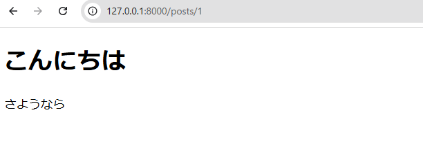 | show | GET | /posts/{id} | posts.show | 特定のデータを表示する |
