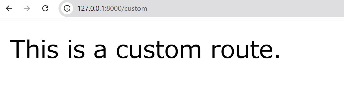 このコードでは、/customにアクセスした際に、This is a custom route.というメッセージが表示されるようしています。