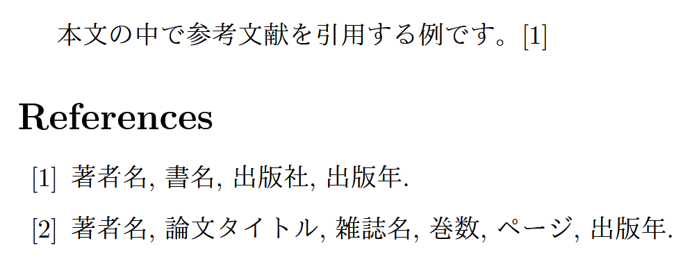 より多くの参考文献を管理する場合、BibTeXを使うことをお勧めします。