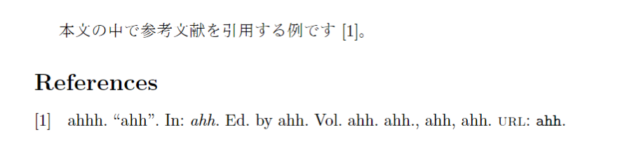 本文の中で参考文献を引用する例です。\cite{sample1}