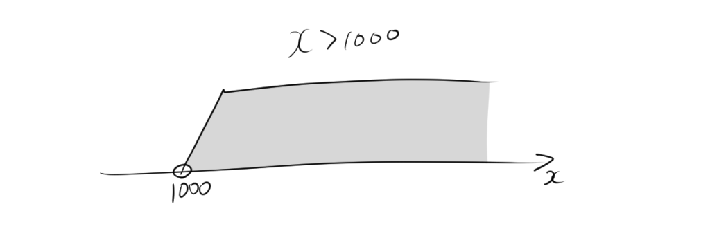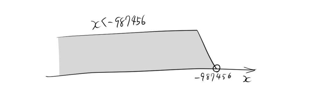 不等号にイコールを含まない場合の数直線は次のように書かれます。