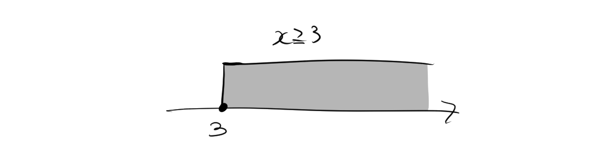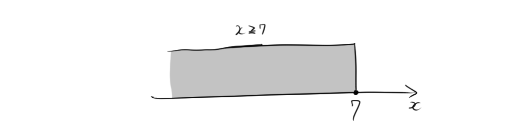 不等号にイコールを含む場合の数直線は次のように書かれます。