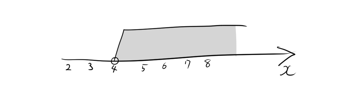 この数直線上で、求めた範囲 \(x > 4\) を表現します。