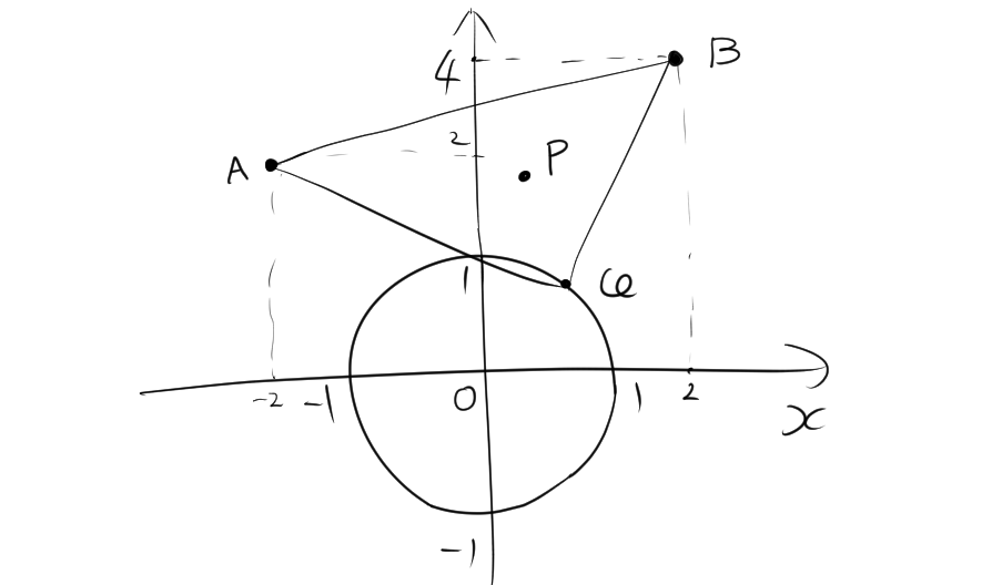 次に、点 \( Q \) が円 \( x^2 + y^2 = 1 \) 上にあるため、次の条件を満たします。