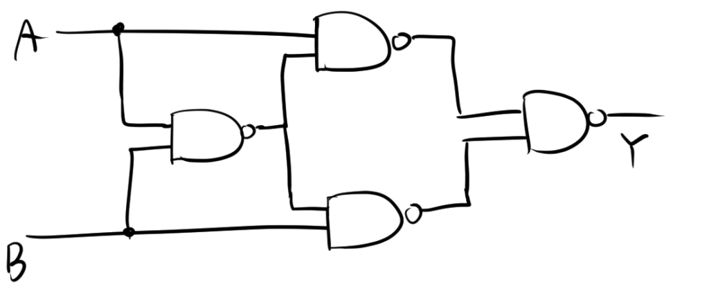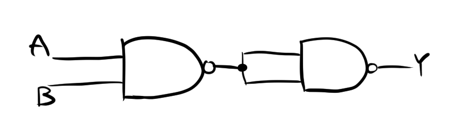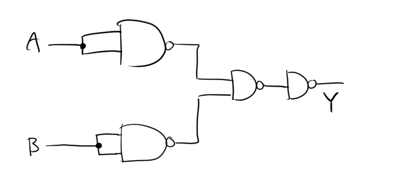 $$Y = \overline{(\overline{A \cdot A}) \cdot (\overline{B \cdot B})}$$