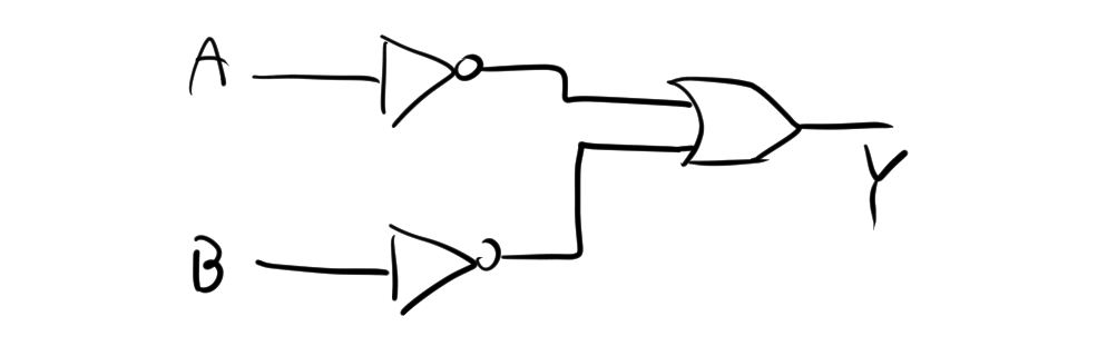 $$Y = (\overline{\overline{A}}) + (\overline{\overline{B}})$$