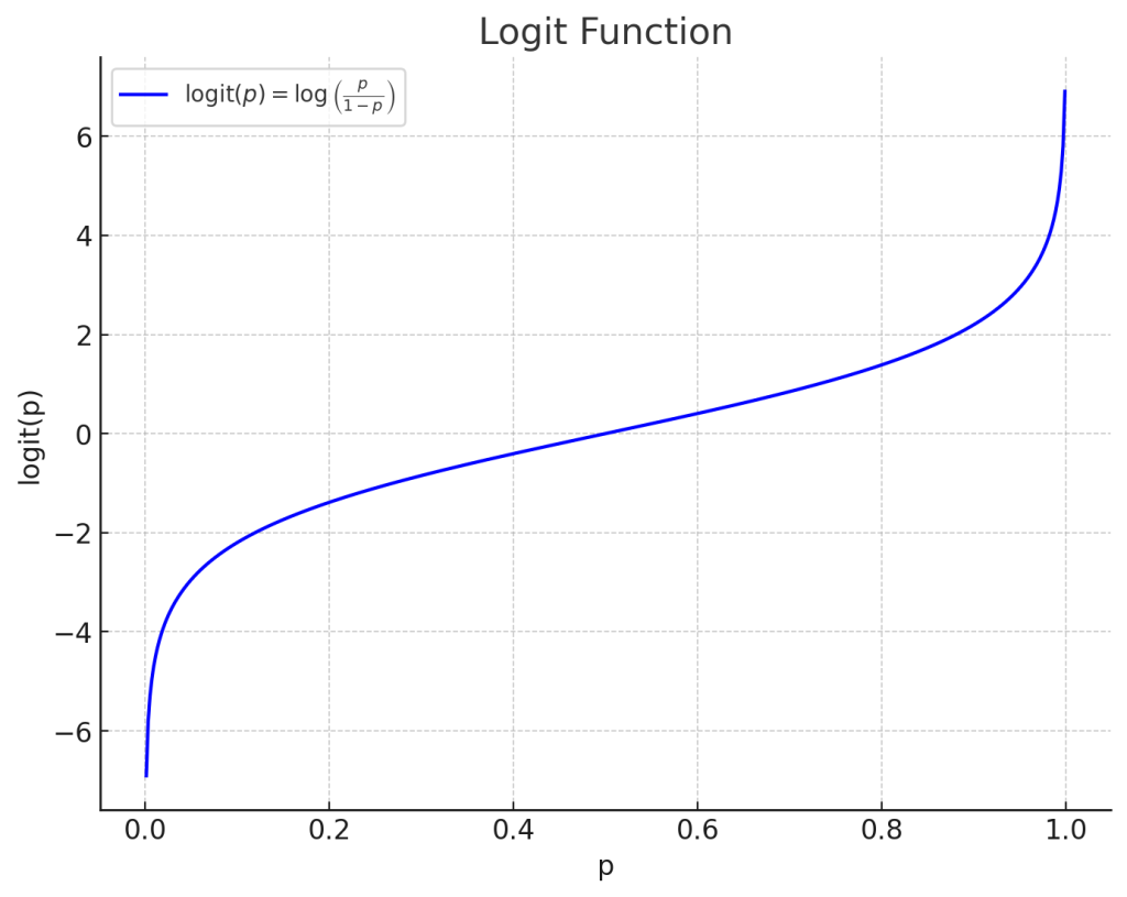 \[ \operatorname{logit}(p) = \log\left( \frac{p}{1 - p} \right) = \log(p) - \log(1 - p) \]