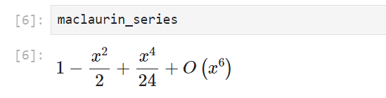 このコードは、関数 \( \cos(x) \) のマクローリン展開を6次まで計算し、結果を表示します。出力は次のようになります。