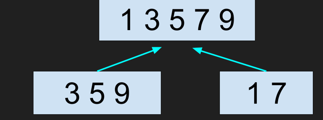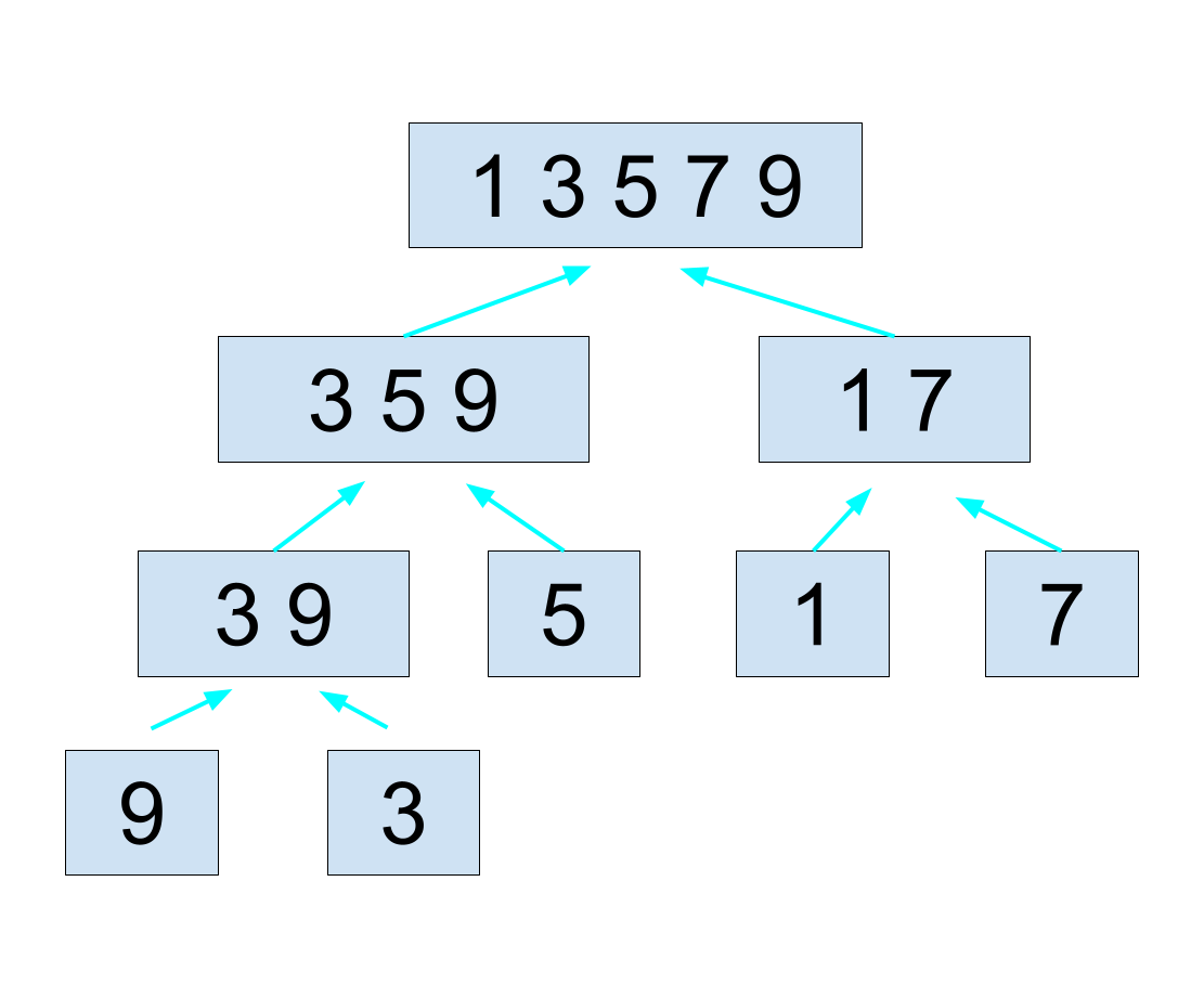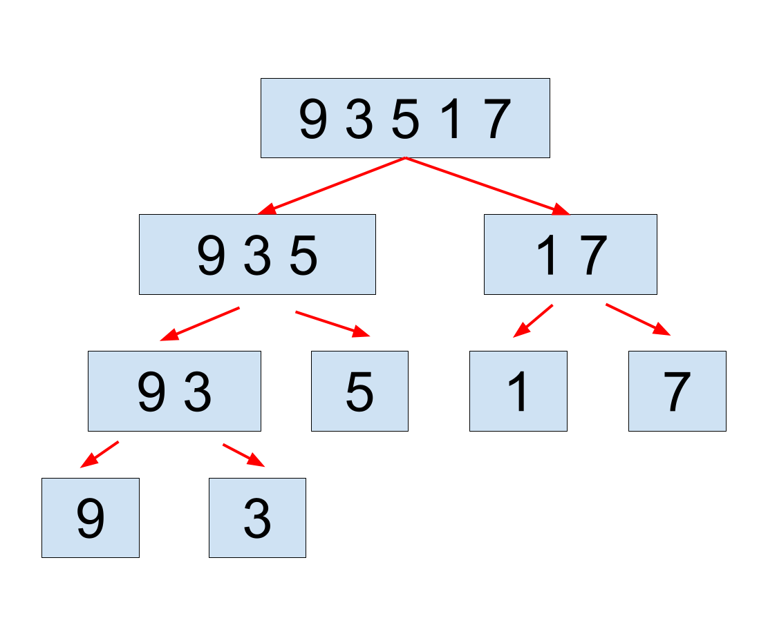 大まかなマージソートの動作のイメージ図は次のようになります。