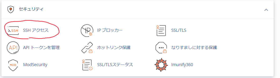 次にCPanelのSSHアクセスに移動します。