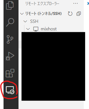 ~/.ssh/configファイルを編集し、以下のようにMixHostサーバーの情報を追加します。Host mixhost HostName xxx.xxx.xxx.xxx User mixhostUser IdentityFile C:/Users/myUser/.ssh/id_rsaHostNameは自分の好きな名前にしてください。今回はmixhostにしています。