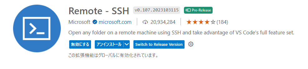 - Remote – SSH拡張機能のインストール Visual Studio Codeを開き、左側の拡張機能アイコン(四角形が四つ並んだアイコン)をクリックして「Remote – SSH」を検索し、インストールします。