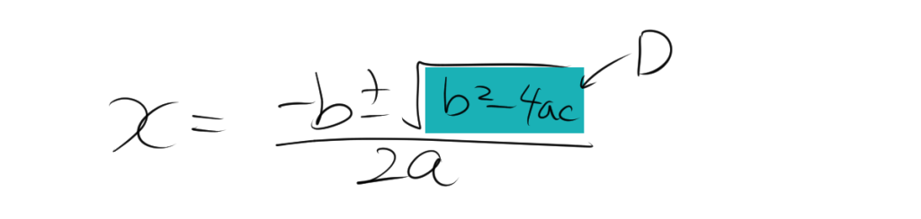 となりますが、判別式$b^{2}-4ac$とはルートの中身を意味します。