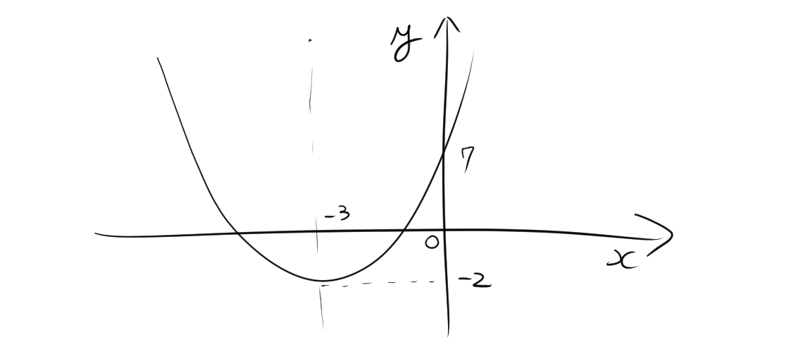 よって、y軸との交点は(0,7)であることがわかる。したがって、グラフを書くと、