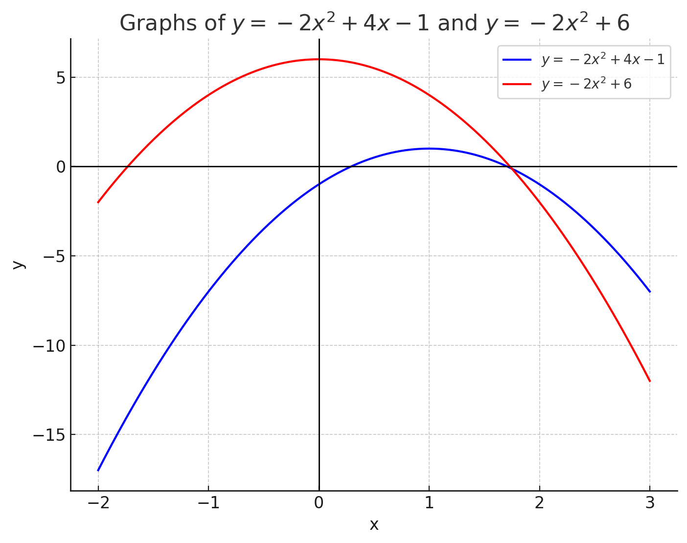 \( x \)-軸方向に -1 だけ平行移動 → \( y = -2(x + 1)^2 + 4(x + 1) – 1 \)