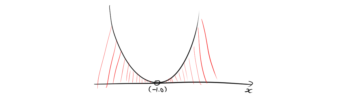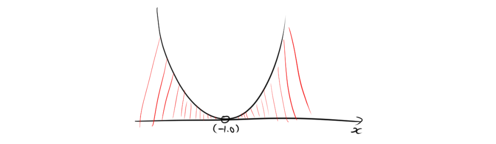 この不等式 \( (x + 1)^2 > 0 \) は、\( x \neq -1 \) のときに成り立ちます。つまり、xの範囲は-1を除く実数である。