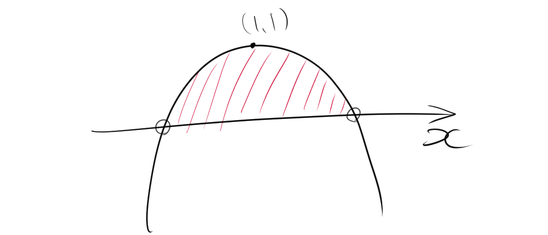 したがって、図の赤色の範囲が求めるxの範囲であるので、