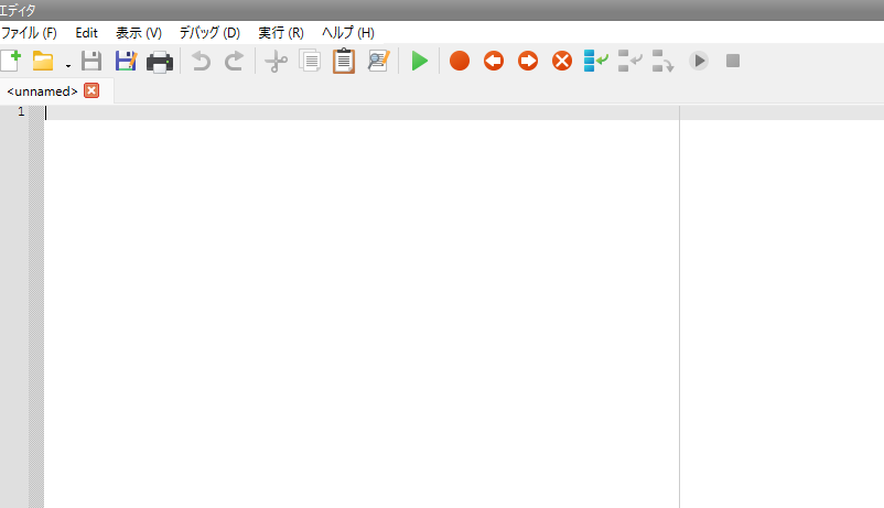 エディタの部分にスクリプトを記述して「Ctrl+S」でスクリプトを保存します。