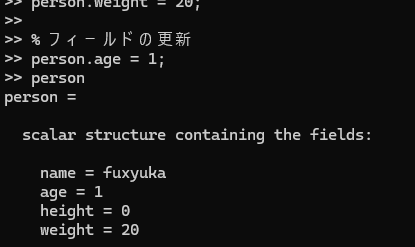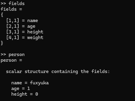 person = struct("name", "fuxyuka", "age", 0, "height", 0);