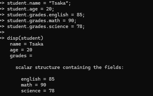 Octaveの構造体は、複数の異なるデータ型を持つ変数をまとめて一つのデータ構造として扱うことができる機能です。構造体は、異なるフィールド(フィールド名)を持ち、それぞれのフィールドに値を格納することができます。Octaveでは、構造体を次のように定義および操作できます。