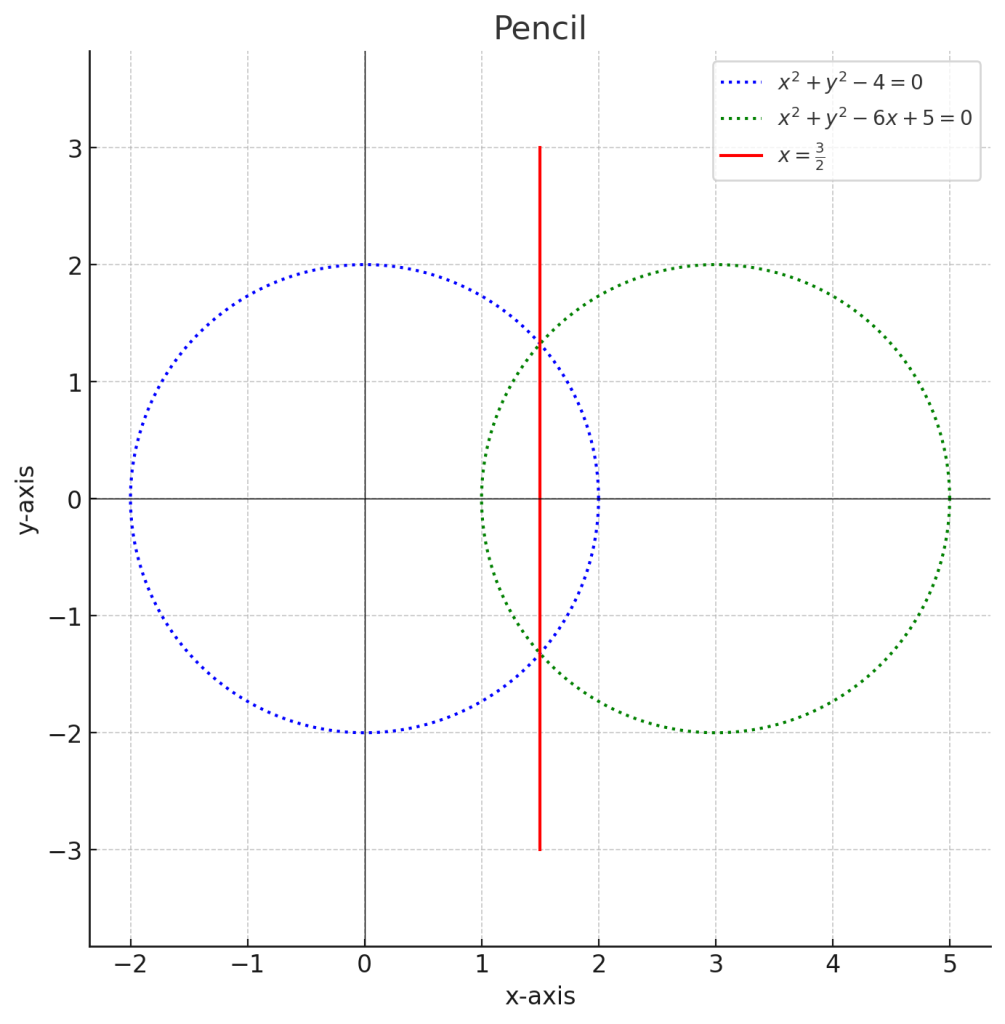 \[ s (x^2 + y^2 - 4) + t (x^2 + y^2 - 6x + 5) = 0 \]