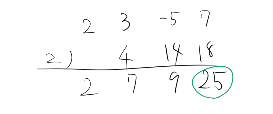 組立除法で、余りが正しいか確認すると次のようになる。