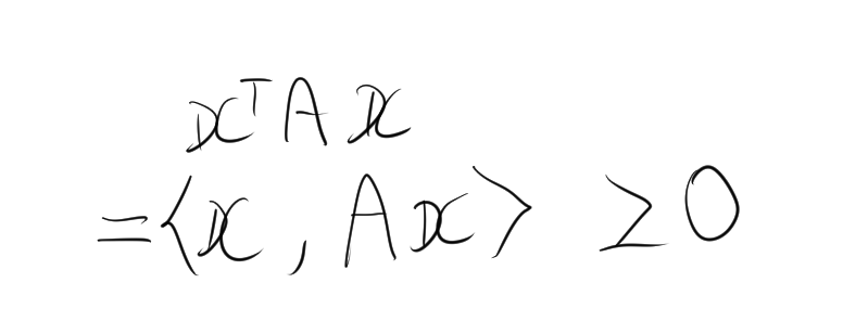 \[ \forall \mathbf x \in \mathbb{R}^n, \quad x^\top A x \geq 0 \]