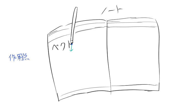 力の作用点は、力が物体にどこで作用しているかを示す要素です。力はベクトルで表されるので、ベクトルの始点が作用点になります。例えば、ノートに鉛筆で文字を書いているとき、ノートと鉛筆の接点が作用点です。