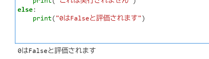 上記のコードでは、0 が False として評価されるため、else ブロックが実行されます。