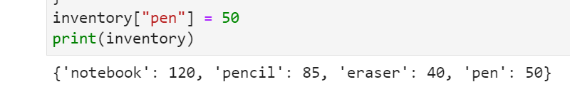 inventory["pen"] = 50