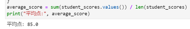 student_scores にある学生の点数を使って、平均点を計算して出力してください。student_scores = {