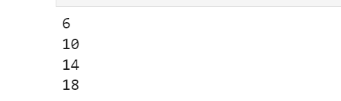 [3, 5, 7, 9]にある要素を2倍にして出力するプログラムを作成してください。期待される出力:
