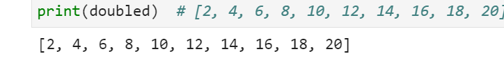 print(doubled) # [2, 4, 6, 8, 10, 12, 14, 16, 18, 20]
