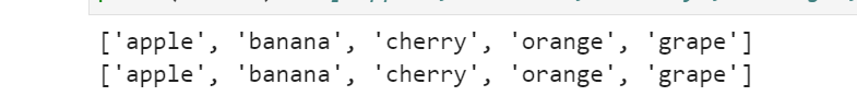 print(fruits) # ['apple', 'banana', 'cherry', 'orange', 'grape']