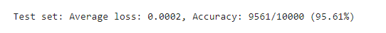 print(f'\nTest set: Average loss: {test_loss:.4f}, Accuracy: {correct}/{len(test_loader.dataset)} ({accuracy:.2f}%)\n')