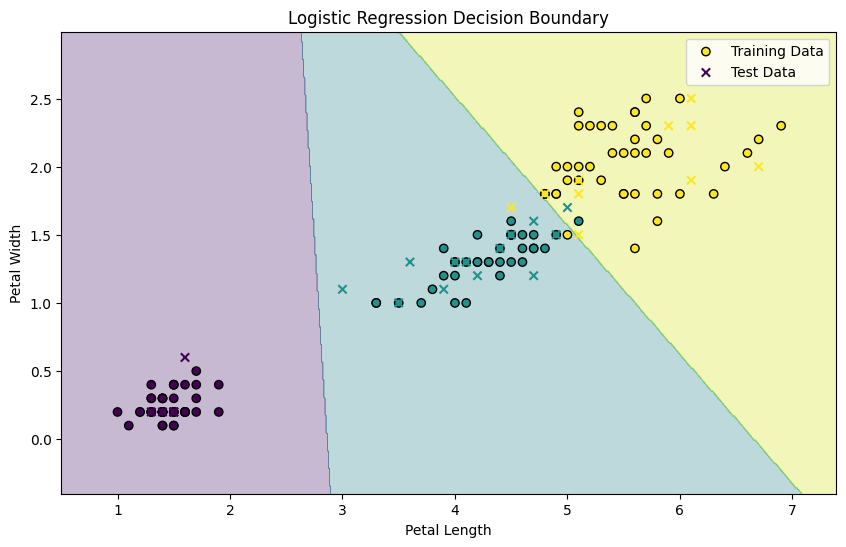 - モデルの作成と学習: ロジスティック回帰モデルを作成し、データに適合させます。